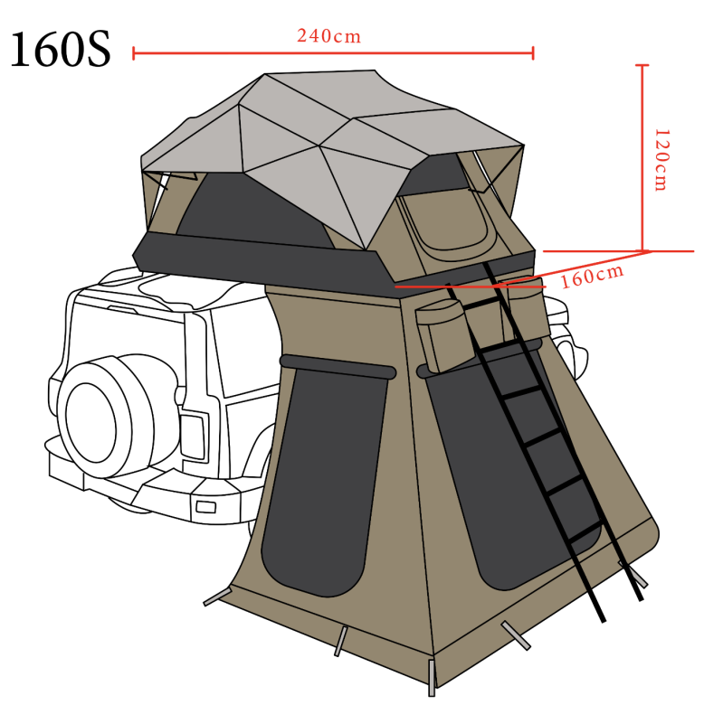 Dormir à la belle étoile avec le confort d’un lit douillet ! Grâce à son ouverture en 60 secondes, sa toile respirante et son matelas haute densité, la tente de toit 160S transforme chaque nuit en pleine nature en une expérience premium. Installez-vous, détendez-vous et profitez d’un vrai cocon sous le ciel étoilé !