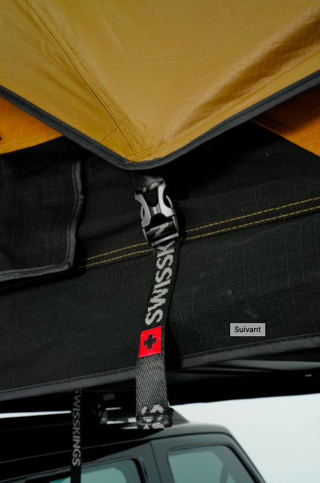 - 2 barres en aluminium prémontées pour connecter la tente aux barres de toit du véhicule. Contrairement au modèle précédent où ces rails de fixation devaient être installés manuellement, cette amélioration permet une installation plus rapide et simplifiée.