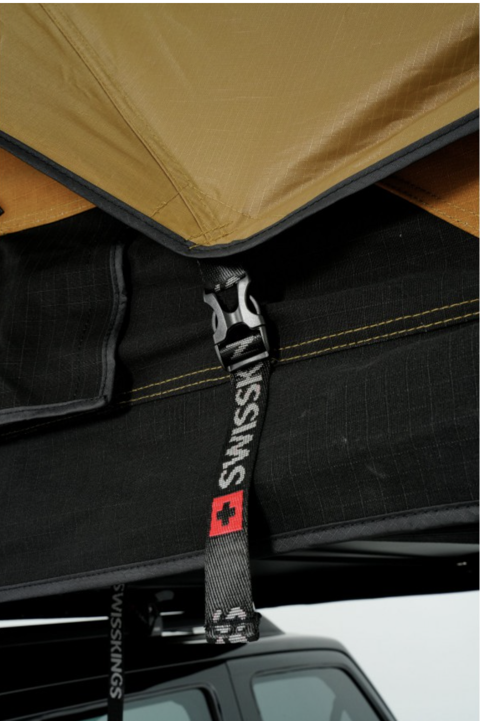 - 2 barres en aluminium prémontées pour connecter la tente aux barres de toit du véhicule. Contrairement au modèle précédent où ces rails de fixation devaient être installés manuellement, cette amélioration permet une installation plus rapide et simplifiée.
